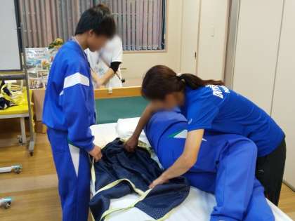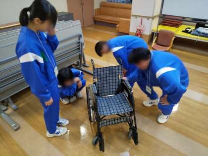 車椅子のたたみ方、移乗リフト試乗など、福祉器具の使い方を教えていただきました。