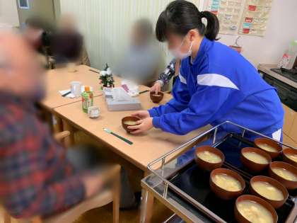 お味噌汁やお茶をお出しして、昼食の配膳のお手伝いをしました。