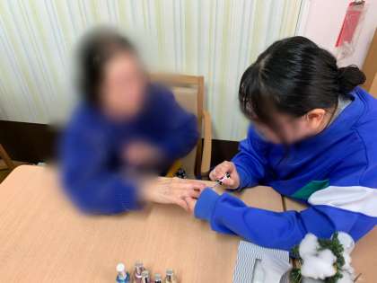 利用者の方々にネイルをつけさせてもらい、オシャレのお手伝いをさせてもらいました。