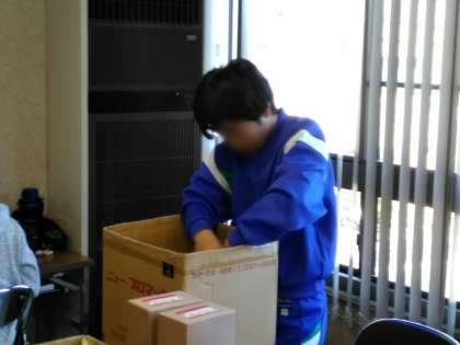 プラスチックスプーンの袋詰屋梱包をさせてもらいました。