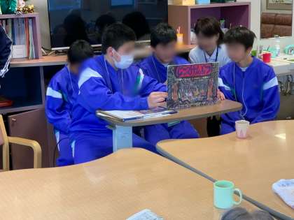 レクリエーションとして、スタッフの方に読み方を教わり、利用者の方々に紙芝居を披露しました。