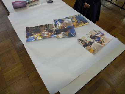 それぞれの事業所で取り組んで感じたことをお礼文の中に入れて書きあげました。お礼状が完成した人たちから、壁新聞作りの続きに取りかかっています。レイアウトや文章作成など知恵をだしあっていました。
