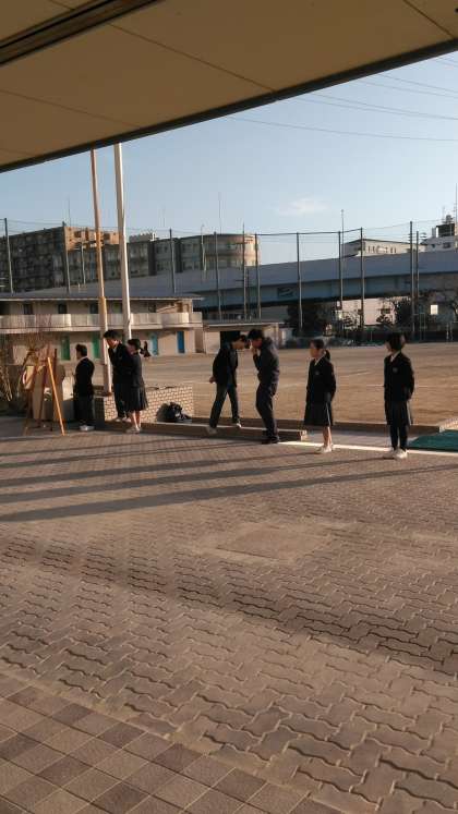 今朝のau運動です。寒い中ですが、しっかり声掛けをしてくれました。