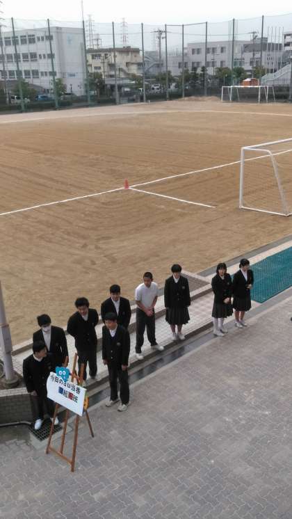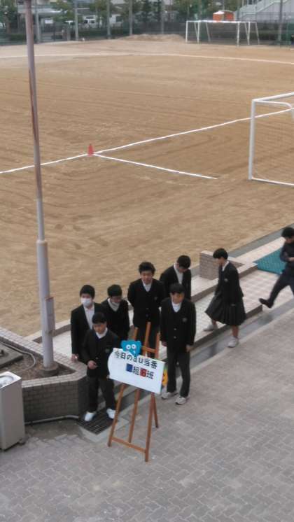本日のau運動の様子です。寒い中、大きな声であいさつしてくれています。