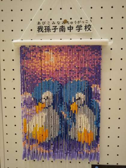 本校からも出品しています。個別授業で作った合同作品や、放課後少しずつ作り上げてきた玉暖簾、文化発表会で展示した書道作品です。他校の作品も素晴らしいものがいっぱいです。