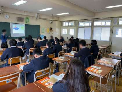 ゲストティーチャーの方の提供資料を見ながら、真剣に話を聞いていたようです。