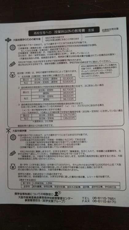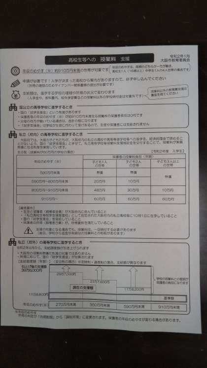 本日、3年生の皆さんに「高校生等への授業料支援・授業料以外の教育費支援」についてのプリントを配布いたします。よろしくお願いいたします。