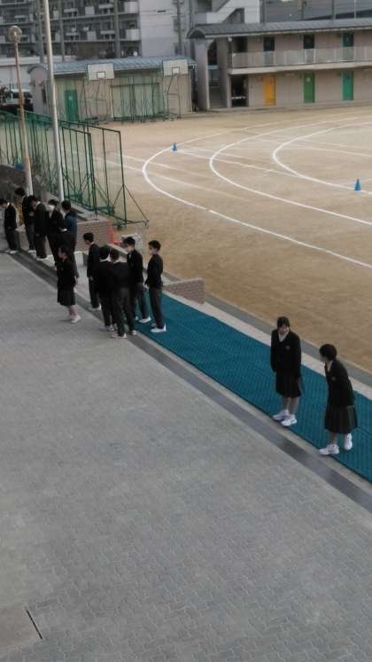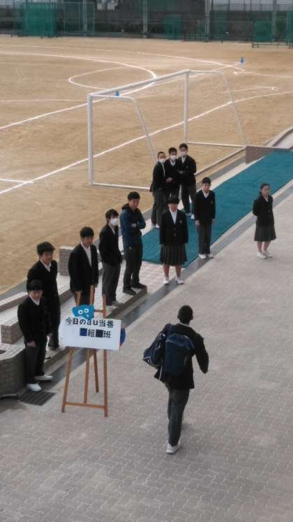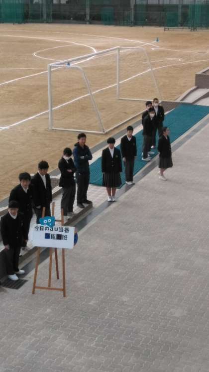 今朝のau運動です。寒い中、元気に声掛けをしてくれています。