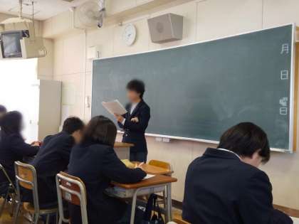 先日その取り組みの第1弾として「班予選」があり、それを通過した生徒の作品がクラス内で発表されました。