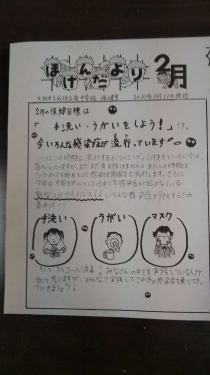 本日「ほけんだより2月号」を生徒の皆さんに配布いたしました。よろしくお願いいたします。