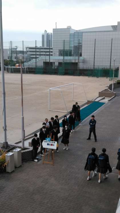 今朝のau運動の様子です。暖かい朝となりました。今日も大きな声であいさつしてくれています。