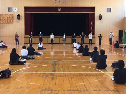 まずは体育館に集合し、3年所属の先生方の紹介や、お話がありました。
