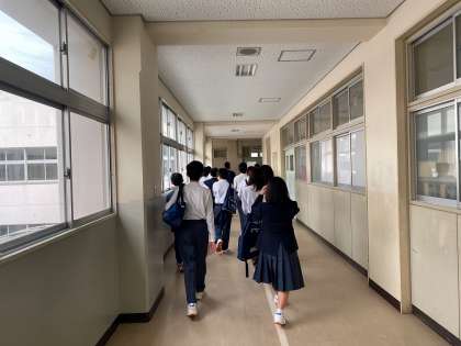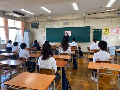 プリントに沿って説明がありました。その後、校舎見学をしました。まだ、通常の学校生活へ戻るには時間がかかるかもしれませんが、少しずつ中学校に慣れていってくれたらと思います。