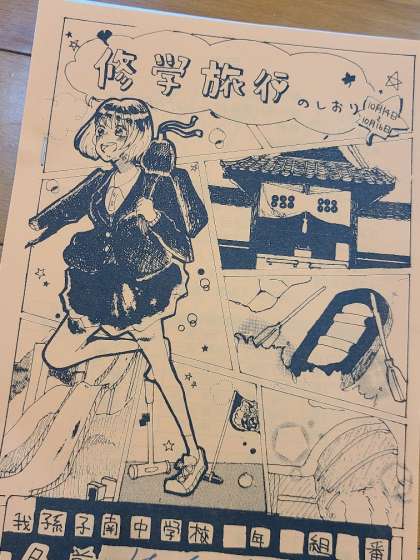 修学旅行委員を中心に、手作業で製本し、59ページというボリュームたっぷりの内容になっています。