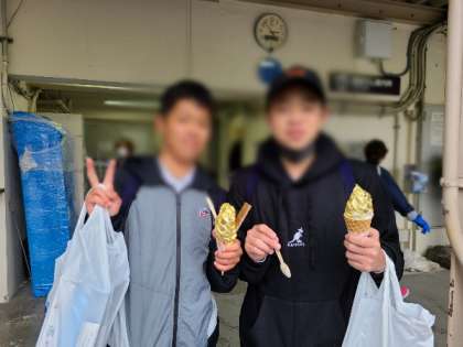 金箔ソフトクリームに挑戦しています。
