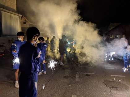 学級活動のあとは、内緒にしていた花火大会をしました。季節外れの花火ですが、大変喜んでくれました!