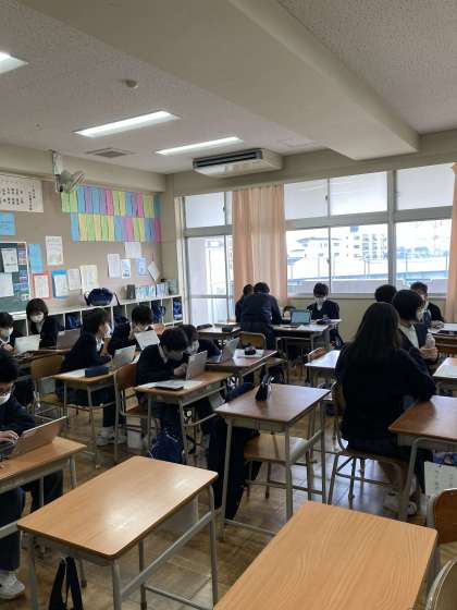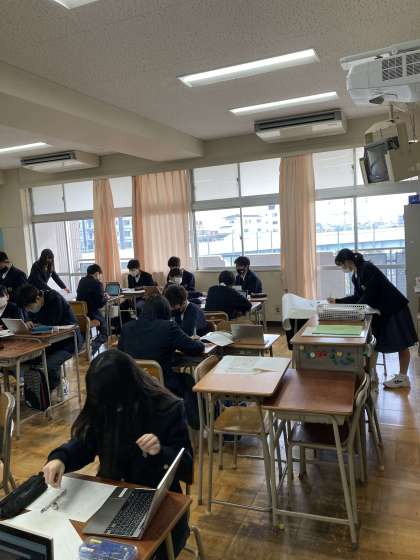 冬休みの宿題の職業調べに続き、今は班に分かれて、職業新聞を作っています。
