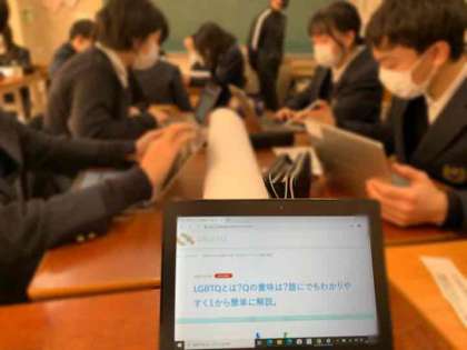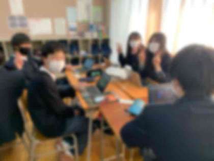 前回抽選で決まったテーマの内容を個々で調べ、班で共有、そして模造紙にまとめていきます。