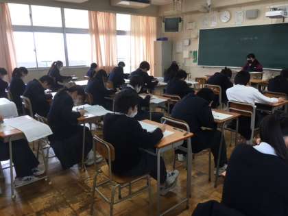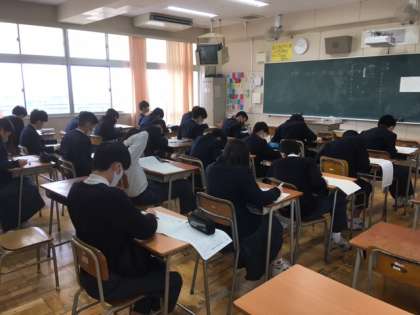本日、1・2年生全員を対象に日本漢字能力検定(漢検)を実施しました。事前に一人ひとりにとった受検希望級通りに教室に分かれ検定に臨みました。しっかり勉強して臨んだ人もたくさんいます。ちなみに3級が中学校卒業レベルの問題になります。今回の検定をきっかけに漢字に興味を持ってくれればうれしく思います。