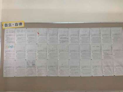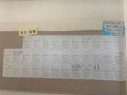 また、「自律」でやっていくこととして、「人の意見に頼らない」と書く生徒もいれば、「困ったらすぐ人に聞く」と書く生徒もおり、同じ「自律」でも180度違った考えを見せてくれました。