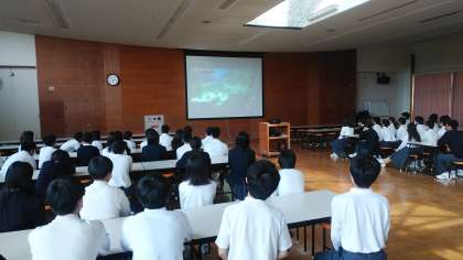 今日の6限は平和学習の2回目でした。前回に引き続き、「あの日、僕らは戦場で ー少年兵の告白ー」の続きを観ました。日本で唯一の地上戦となった沖縄が舞台です。中学生のみなさんと同じような年齢の少年が銃を持たされ、戦場に送られました。人の命を奪うよう強いられ、大切な人の命が奪われたのです。みなさんはどう感じたでしょうか。