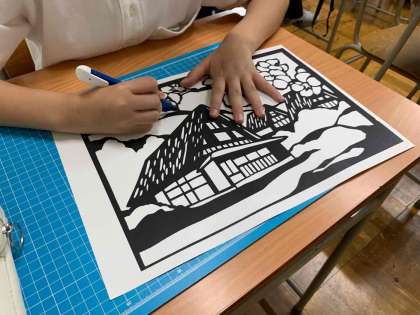 本日、1年生は文化発表会に向けて切り絵の練習を行いました。