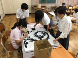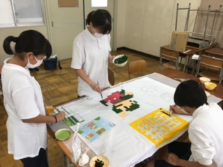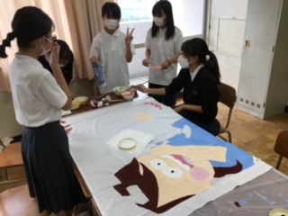 今週の放課後は体育大会に向けて、各クラスの有志を募って学級旗を作成しています。完成が楽しみですね!