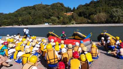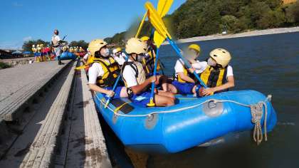 最高の天候のなかラフティング開始です。