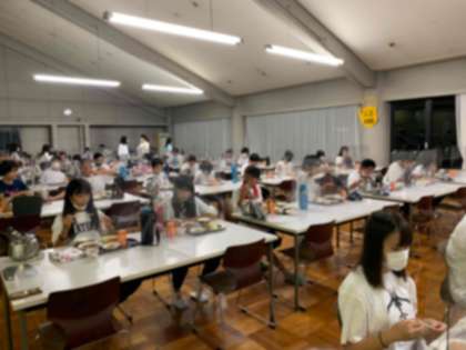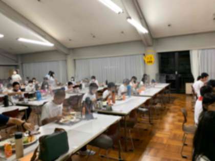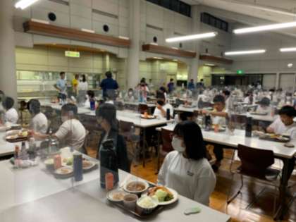 大きな食堂で、一人一人 区切られた場所で皆、美味しそうに食べています!