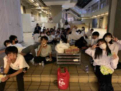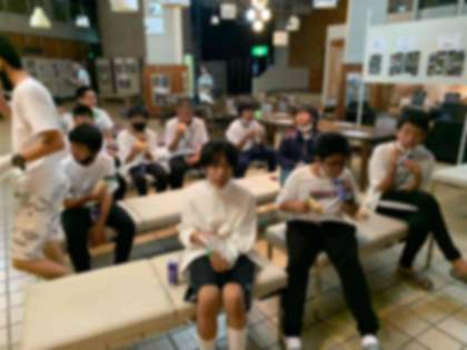 夜の活動が終わり、メロンパンとぶどうジュースを食べています。