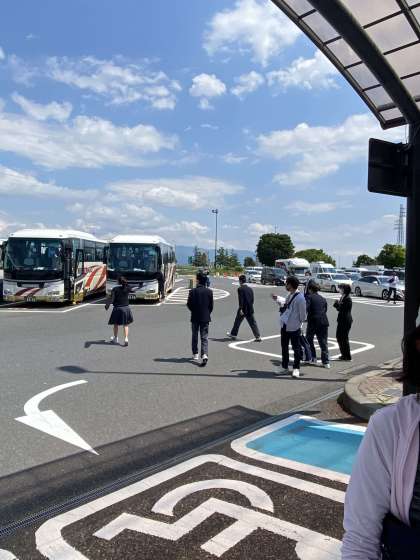 予定通り、梓川SAに到着しました。最後のトイレ休憩地点です。6時間のバス旅ももうひと息!ここまで体調不良者もなく、順調に来ています。