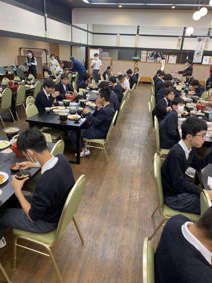 二泊目の宿、黒部観光ホテルに到着し、入館式を行いました。そのまま夕食となります。
