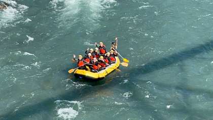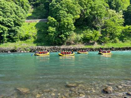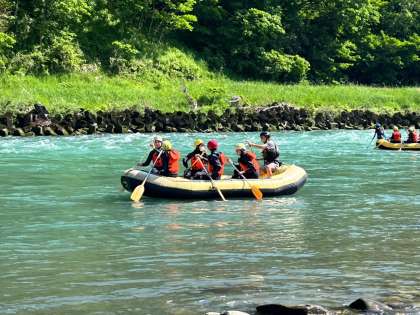 グループごとに分かれてラフティングをしました。長野県は昨日の夜に雨が降ってラフティングできるか心配でしたが、みんなの願いが届き実施することができました。