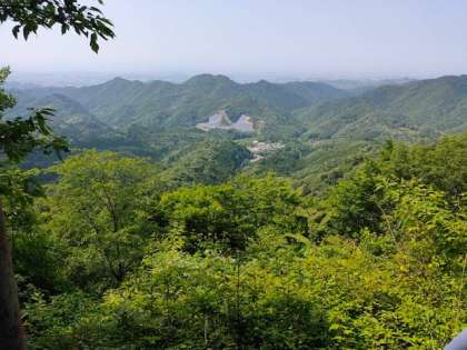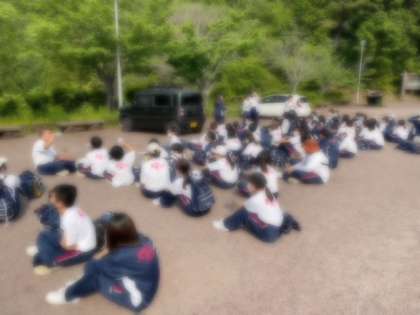 写真は、山上展望台からの風景と下山後のアスレチックでの様子、スポーツドリンクをがぶ飲みす生徒たちです。