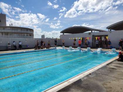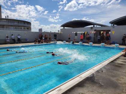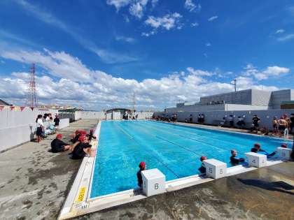 本日、1年生は午後から青空の下、水泳大会を行いました。