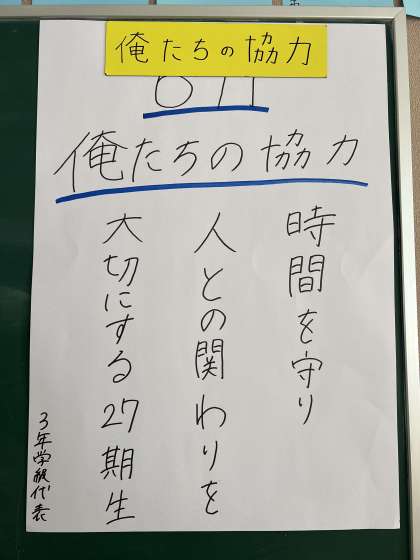 6月の俺たちの主張は「時間を守り人との関わりを大切にする27期生」です。