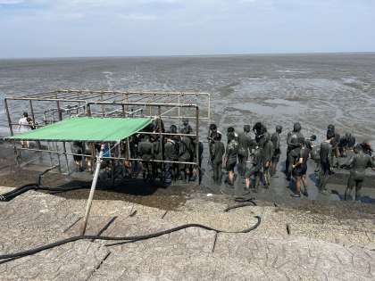 しっかり遊んだ後は、シャワーを浴びて泥を落としました!