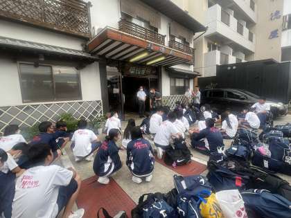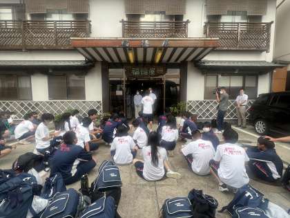 1組本日の宿舎、"福徳屋"に到着しまし入館式を行いました。