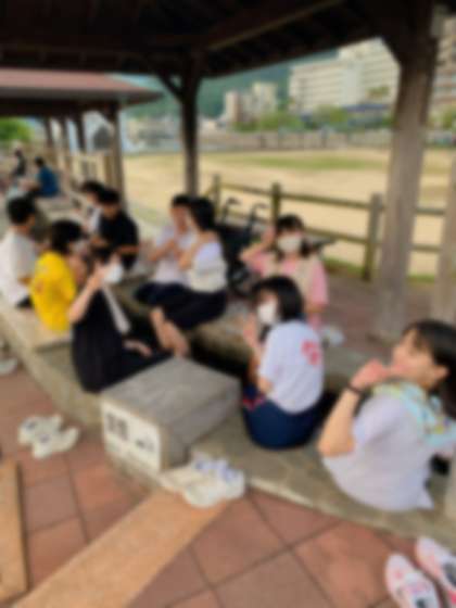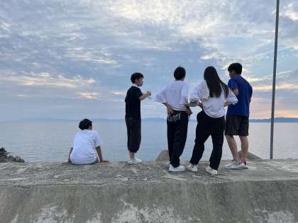 暑すぎず、夕陽が落ちた海を眺めている生徒もいました。