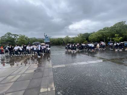 この後平和祈念像前でクラス写真撮影後、平和セレモニーに移ります。
