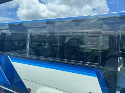 12時45分、博多駅に向けてバスが出発しました! 1時間程度バスを走らせ金立SAに向かいます。