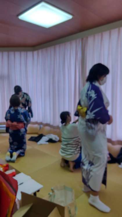 先週と本日の全2回、浴衣の着付け教室を実施しました。参加者は大人も含め、それぞれ16名、17名とたくさんの方に参加していただきました!