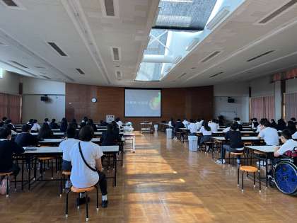 1回目は各クラスで学習しましたが、本日は全クラス食堂で"沖縄戦 全記録"の映像を見て学習しました。
