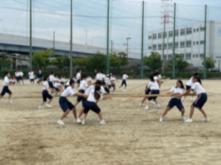 今日は学年種目「棒引き」の練習です。練習といえども目の前の棒に一直線に走り、くらいつき、なかなかの盛り上がりを見せてくれました。