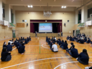生徒会役員と学級代表が極秘で準備を進めてくれたパワーポイントをみんなでワクワクしながら見て、話を聞きました。