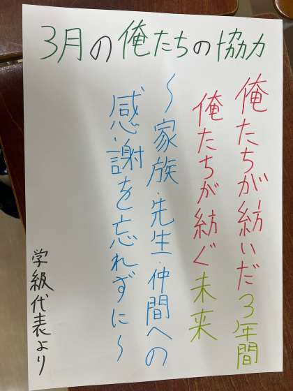 卒業式まで残り数日です。今まで私たちを支えてくださったか家族や先生、なかまに感謝の気持ちを伝えてみてはどうでしょうか!