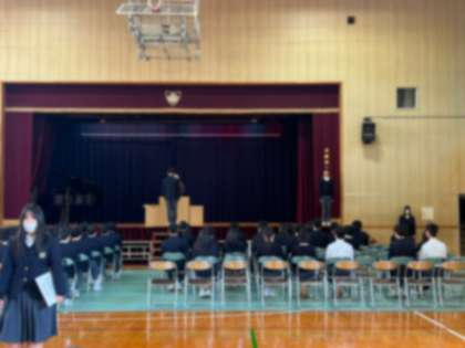1時間目に行った卒業証書の授与の練習をもとに、一人一人壇上に上がり、名前を呼ばれてもらうところまでの流れを練習しました。