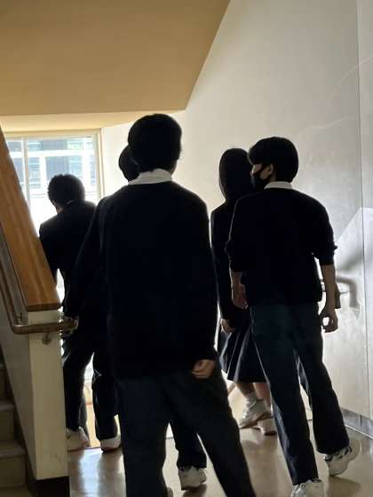 講話にもあったように、先頭に立つ学級代表のみならず、後ろに続くみなさんの意識、協力が大切です。災害は時と場所を選びません。いざという時、みなさん一人ひとりが訓練を思い出して協力できるようにしましょう。