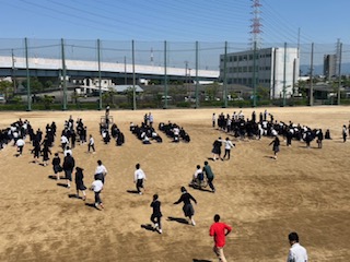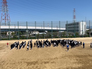 緊急放送(訓練放送)後、学級代表を中心にグラウンドに集合する過程は昨年よりもスムーズに、そして速やかに避難することができ、点呼完了までの時間は2分28秒!(昨年は4分1秒)