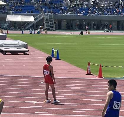 まずは、この大会で、府大会に進出できた人は、おめでとうございます。現状に満足せず半歩先を見据えて努力を続けてください。少し振り返りをします。1年生で試合を経験できた事は、素晴らしいことです。結果も大事ですが、過程を大切にして、自信をもって頑張りましょう。短距離、長距離、跳躍、投擲、リレーと1年生はエントリーしていました。今日、ある選手から伺えたのは、悔しいという言葉。この言葉が出たのは、嬉しく、頼もしく感じました。